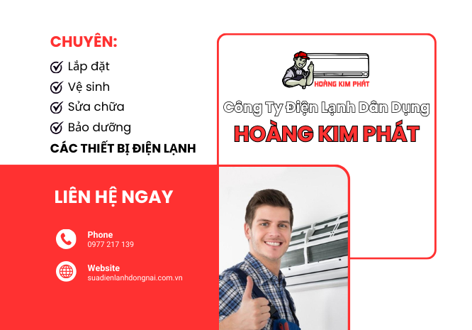 Nếu bạn cần sửa chữa, lắp đặt, bảo trì hay vệ sinh máy lạnh, máy giặt, tủ lạnh tại Đồng Nai, hãy liên hệ: 0977217139 với Hoàng Kim Phát để được tư vấn và hỗ trợ nhanh chóng.